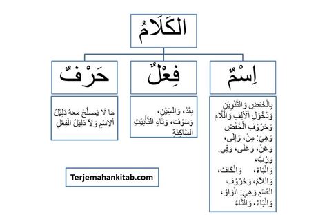 Kalimat isim, merupakan kata yang menunjukkan, nama orang, nama benda, nama gelar, nama kota, nama negara, nama binatang atau tumbuhan.Kalimat fi'il, merupakan kalimat yang menunjukkan suatu pekerjaan atau waktu tertentu.Kalimat huruf, merupakan kalimat yang memiliki makna tertentu didalamnya kecuali kata benda.Pelajari lebih lanjut1. Materi tentang sejarah muculnya ilmu kalam https://brainly.co.id/tugas/11396769